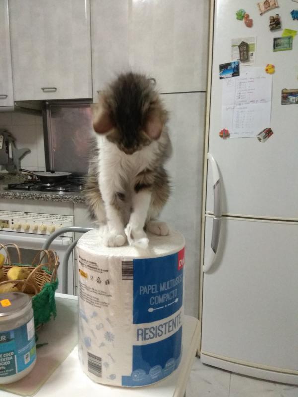 Gemmita es buena hasta decir basta. Tiene muy buen conformar. Casi ni maulla el angelito. Eso sí, solo quiere jugar, jugar, y jugar. Me tiene valdada. No se cansa de correr, ni de que le hagan caso. Yo creo que esto igual me pilla un poco mayor.