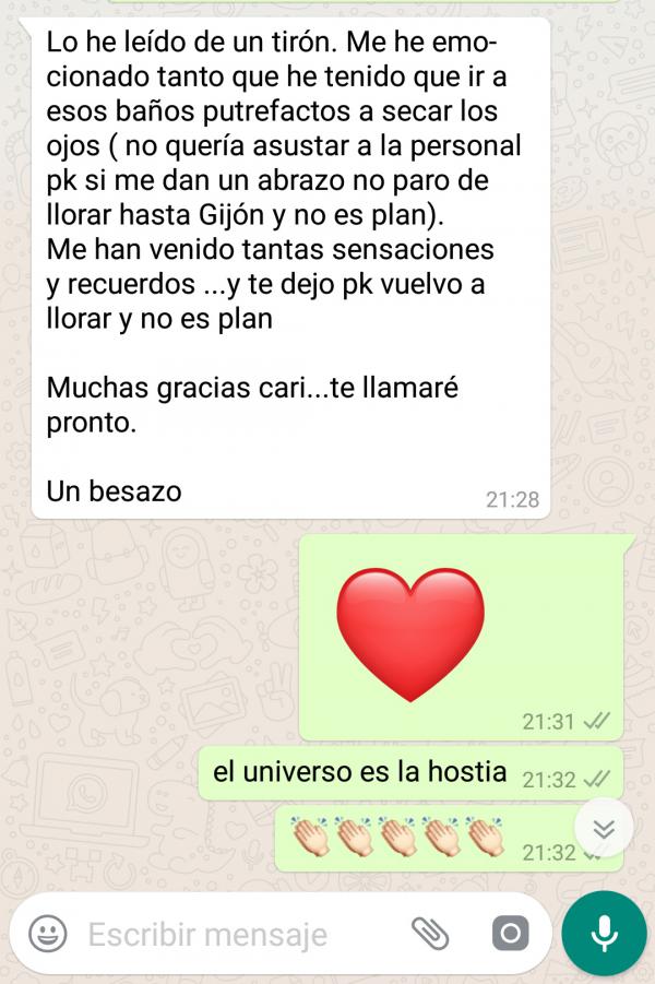 Pero que va, me dí cuenta enseguida de que eso no era, más que nada porque lo que yo tenía al lado era una paisana de Mieres con ganas de hablar, jajajjja, me estuve riendo un rato largo.