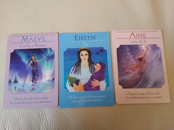 Pues a primeros de año me las eché, es una época muy especial, o me lo parece a mí, como que se mueve mucha cosa en ese período del año, no sé, sensaciones. Total que según las instrucciones (me las leí, que para eso soy disciplinadita), sacas 3 cartas. En la foto salen las 3 que me salieron a mí. Yo les pregunté, porque claro, algo tienes que preguntarles si no, a qué te van a responder,…¿hasta ahí, sí, no…?, bien, sigo. Pues yo les pregunté por el año 2017, cómo iba a ser este año. Y voilá.